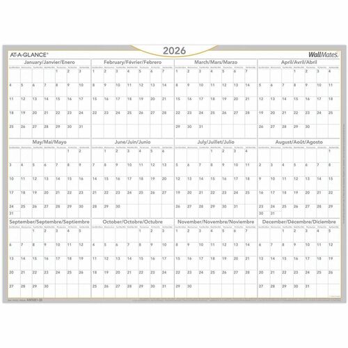 At-A-Glance WallMates Yearly Self-Adhesive Dry Erase Planning Surface, 24" x 18" , bilingual