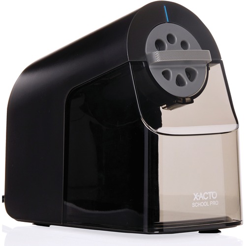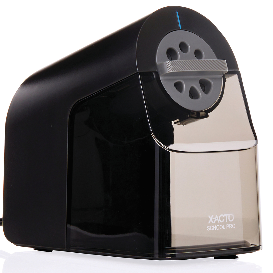Special cutting system provides a sharp rounded point. Cutters disengage when the correct pencil point is achieved. Auto-Reset motor shut-off prevents overheating. Large shavings receptacle. Non-skid feet.