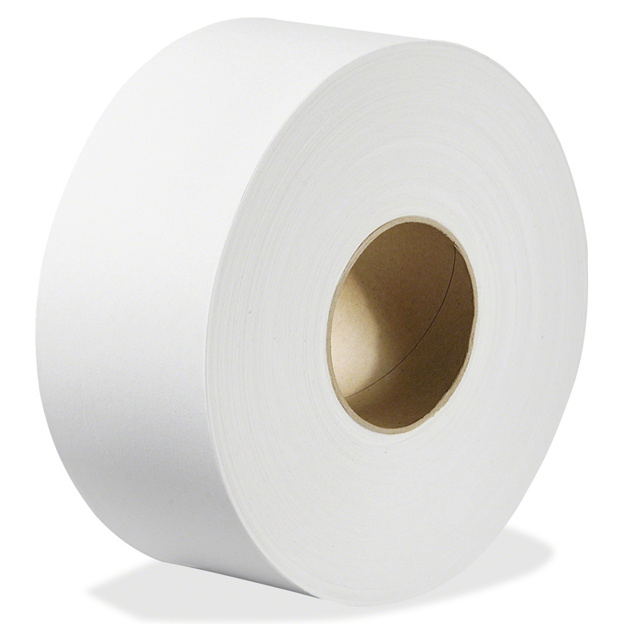 Two-ply jumbo bathroom tissue is designed for use in jumbo-size dispensers. Long-lasting jumbo roll requires fewer refills. The 1,000' roll is ideal for high-traffic washrooms as it reduces the risk of runouts and saves on service time.
